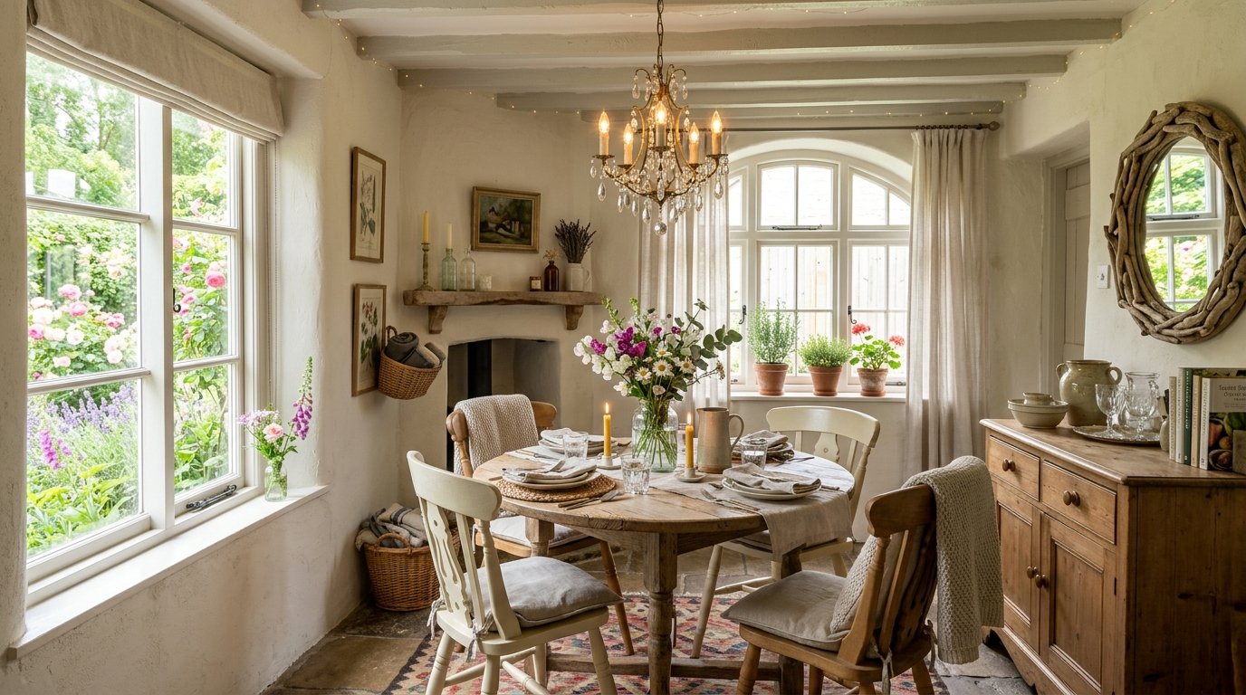 A cottage style dining room isn’t trying to impress your boss. It’s trying to make your aunt stay longer for tea. The walls are closer, yes, but so are people. Sound doesn’t echo as much. Laughter sort of lingers, bounces once, settles.